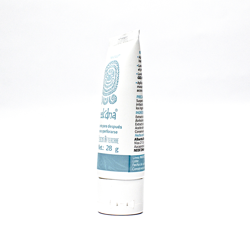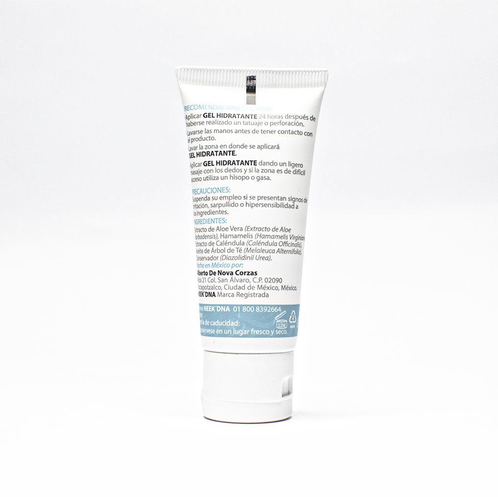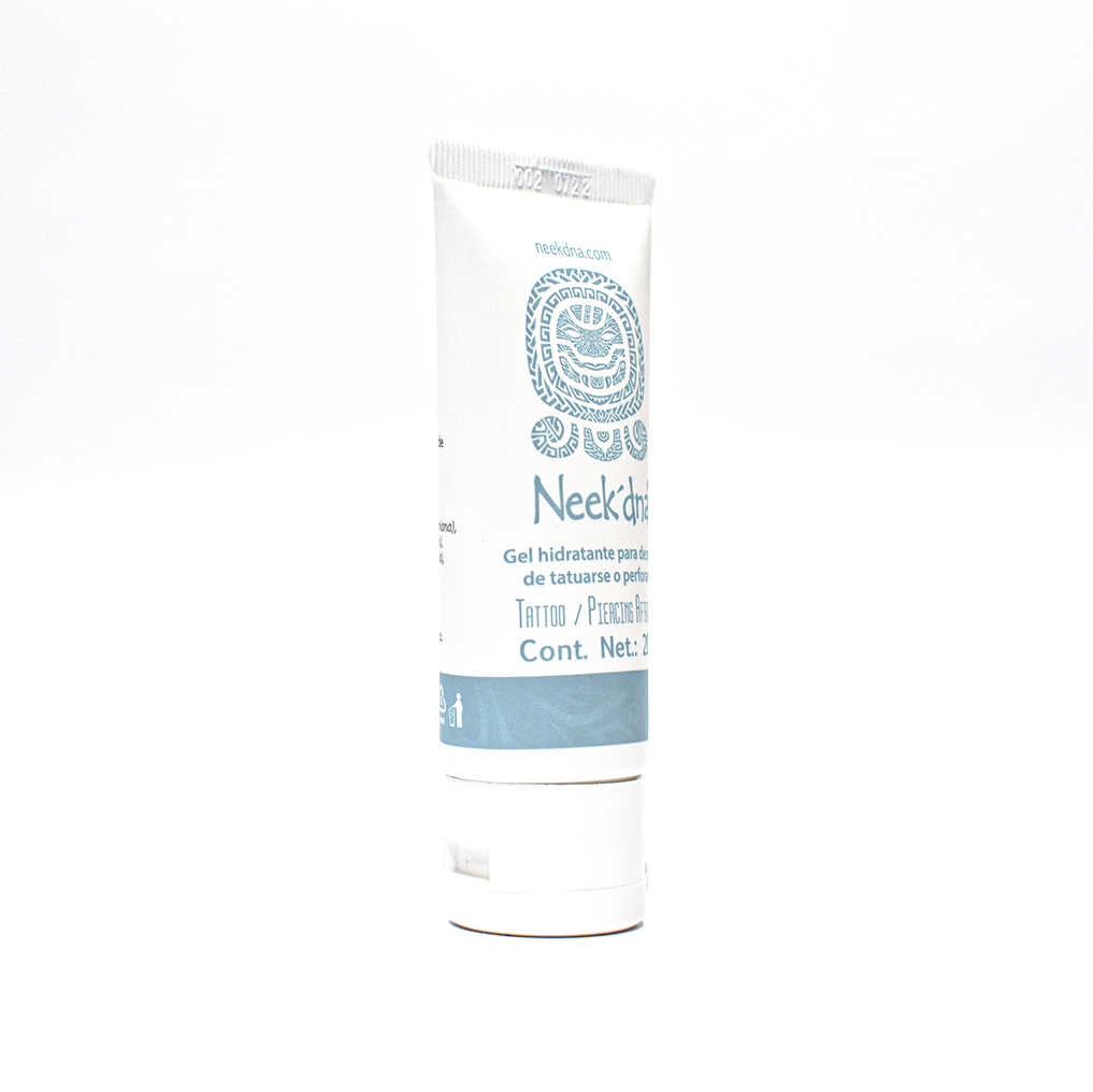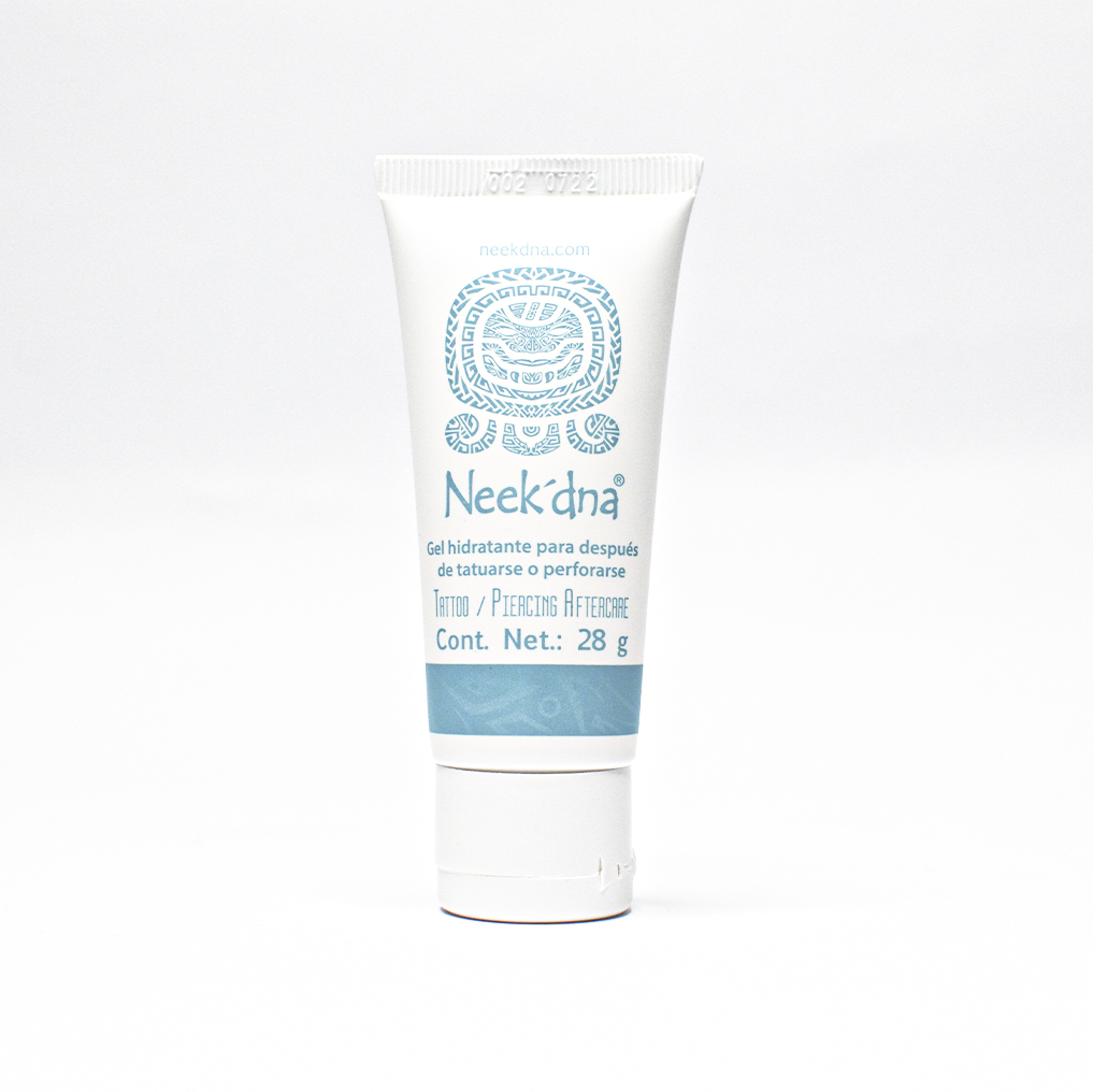 Neek Dna Gel Hidratante para Perforación, es un gel para uso a partir de 24 horas después de realizada tu perforación, también recomendado en tatuajes, su fórmula elaborada con extracto de aloe vera, hamamelis, extracto de caléndula y aceite de árbol de té, lo vuelve un producto ideal para hidratación de la zona tratada.