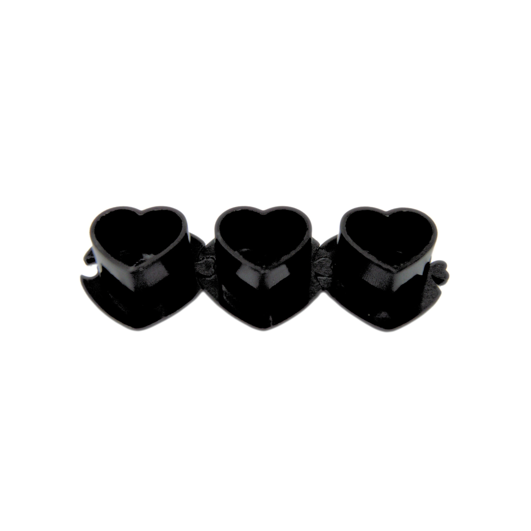 Retapas o cups para tinta de tatuaje diseñados con la forma de un corazón, asi puedes agregar personalidad a tu mesa de trabajo