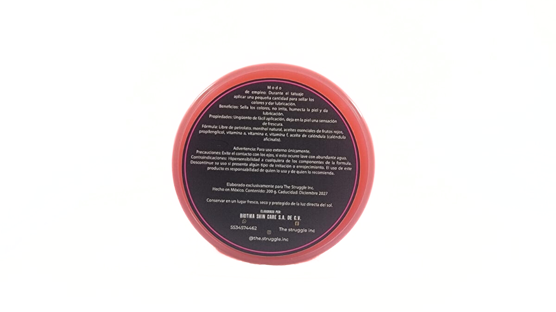 Modo de empleo: Durante el Tatuaje aplicar una pequeña cantidad para sellar los colores y dar lubricación.